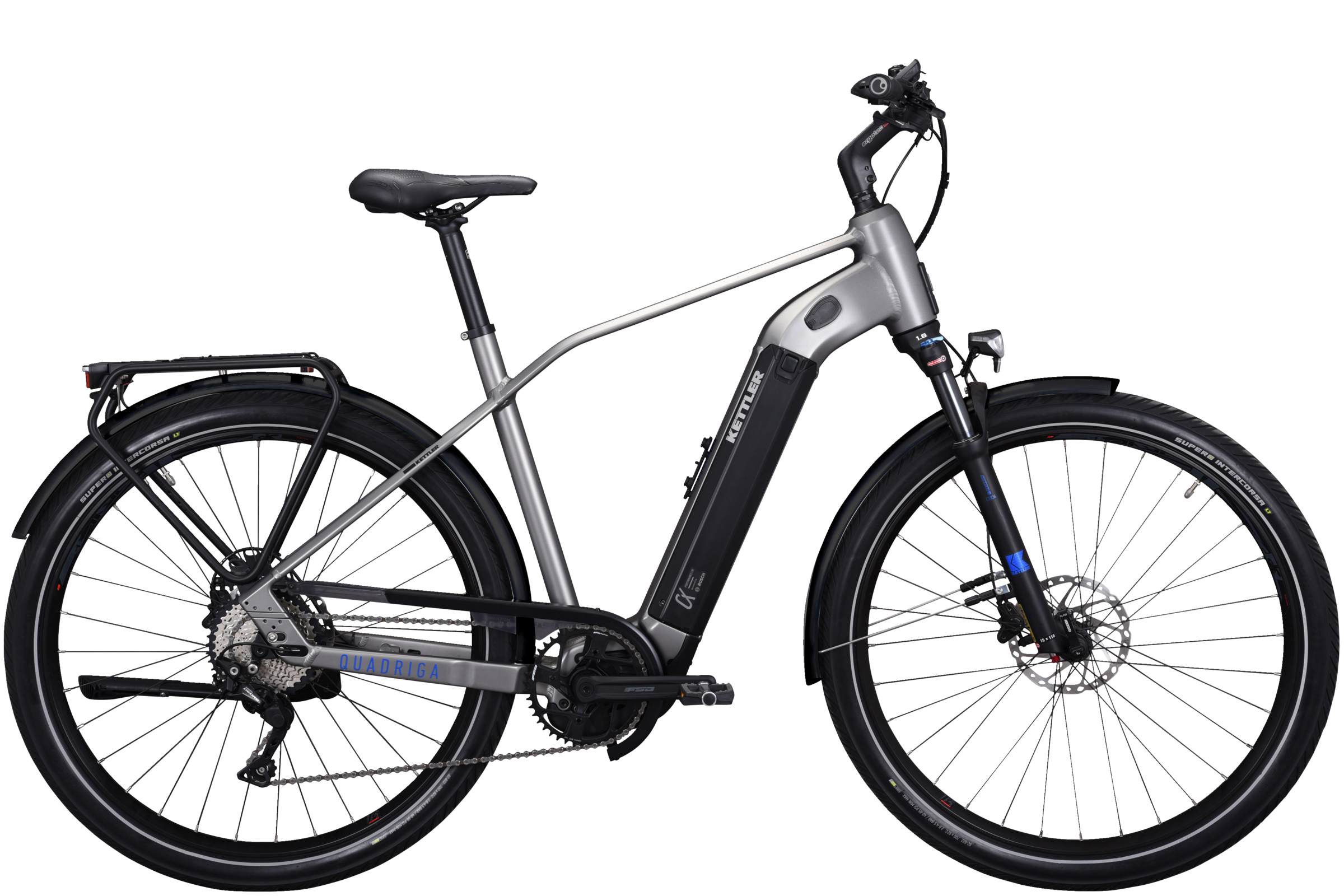 Dieses tolle E-Bike ist das Quadriga DUO CX 10 von Kettler in silber. Es ist mit 10 Gängen, Mittelmotor Bosch Performance Line CX sowie 2 PowerTube Akkus mit 625 wh (Total 1'250 wh) sowie Federgabel und Scheibenbremsen ausgestattet. Geeignet für den Alltag sowie Ausfahrten mit Familie und Freunden.