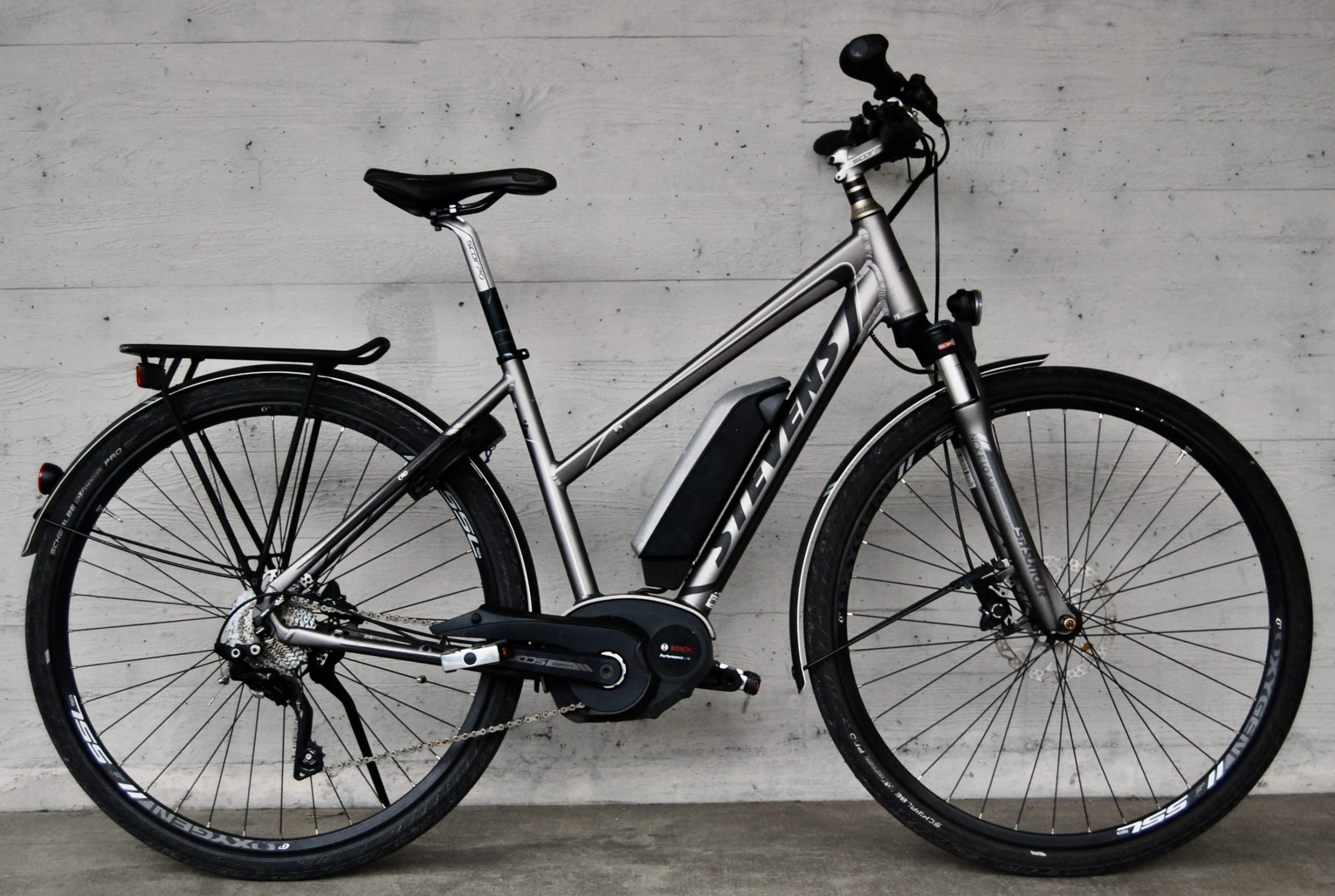 Dieses E-Bike ist das TS von Stevens in grau. Es ist mit 10 Gang Kettenschaltung sowie Scheibenbremsen ausgestattet. Geeignet für den Alltag sowie Ausfahrten mit Familie und Freunden.