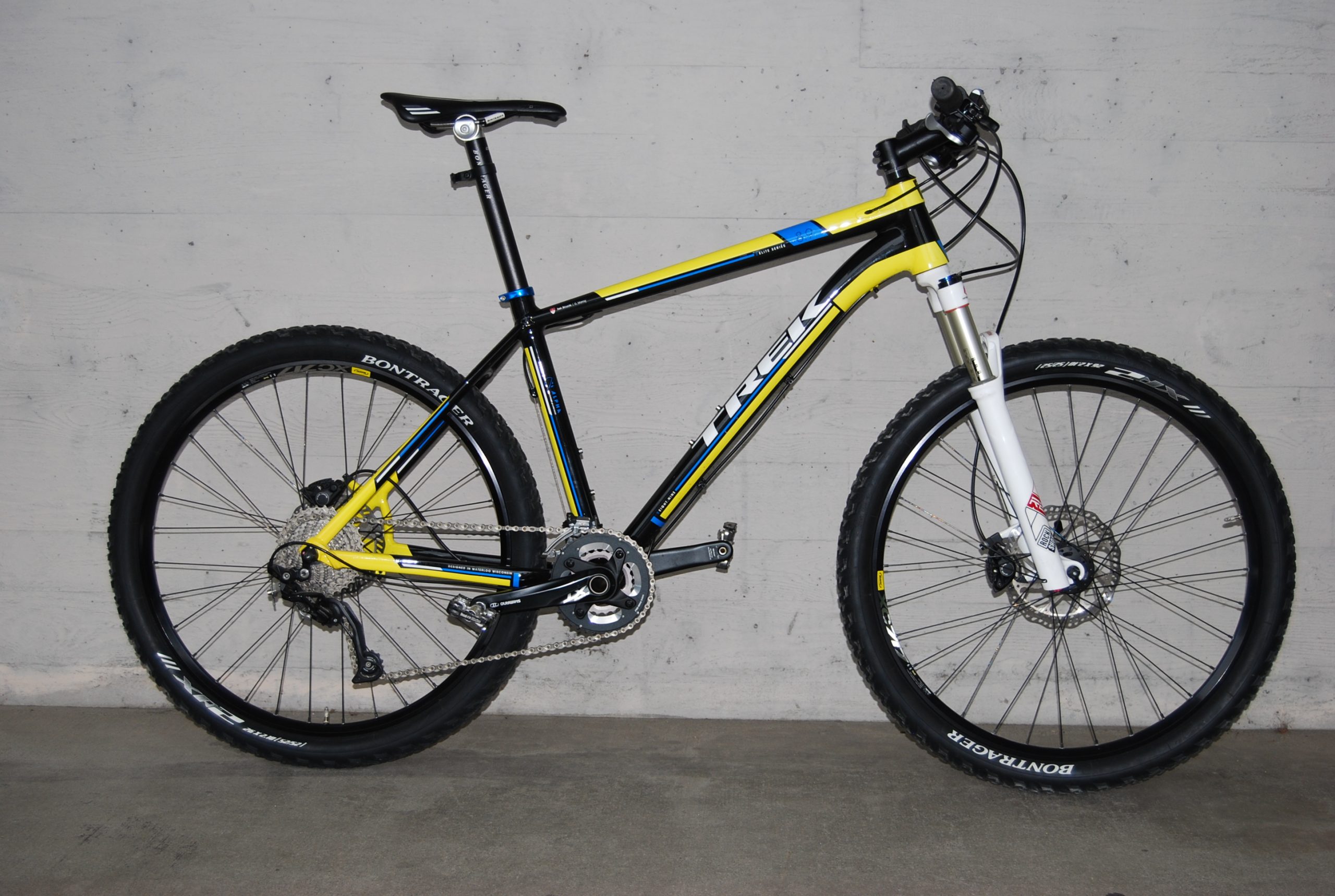 Dieses tolle Mountainbike ist das 8,9 von Trek in schwarz/gelb/blau. Es ist mit 20 Gängen, Scheibenbremsen, Klickpedalen und Federgabel ausgestattet. Geeignet für Trainingseinheiten, den Alltag sowie Ausfahrten mit Freunden und Familie.